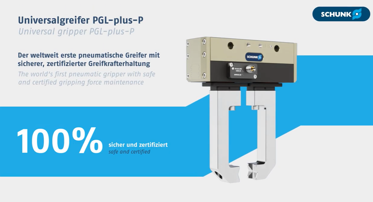 With the new PGL-plus-P, SCHUNK is introducing a flexible and robust powerhouse that shines above all with increased safety. The pneumatic gripper is the first in the world to have certified safe gripping force maintenance.