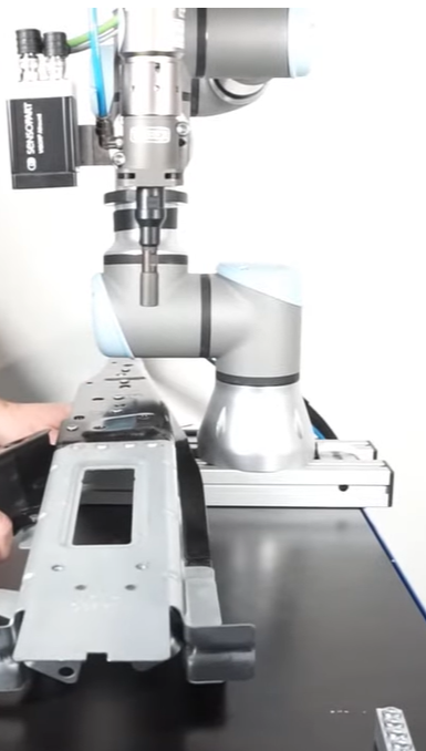 An automated assembly application example with the VISOR® Robotic - In order to automatically insert screws into the object, its 3D position is determined based on an arbitrary contour. The VISOR® Robotic is mounted on the gripper to achieve higher precision and to enable further inspection tasks.